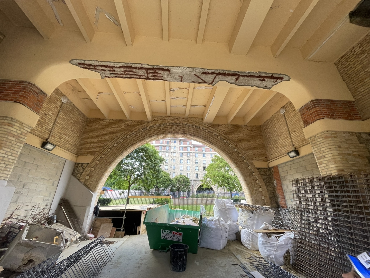 Réhabilitation / transformation des espaces sous-sols (dont d’anciens abris anti aérien de la seconde guerre mondiale) en atelier d’artistes et salles de danses disposées dans les vides de porches sous arches au sein même des bâtiments HBM Hélène Jakubowicz à Paris XXème avec BOIDOT Architectes dans le cadre de la requalification de la cité en ossature BA + bois + métal pour PARIS HABITAT et avec GENERE entreprise de GO + générale : Fin de la partie infrastructure + réhabilitation de gros œuvre et métallerie d’ici fin janvier 2026